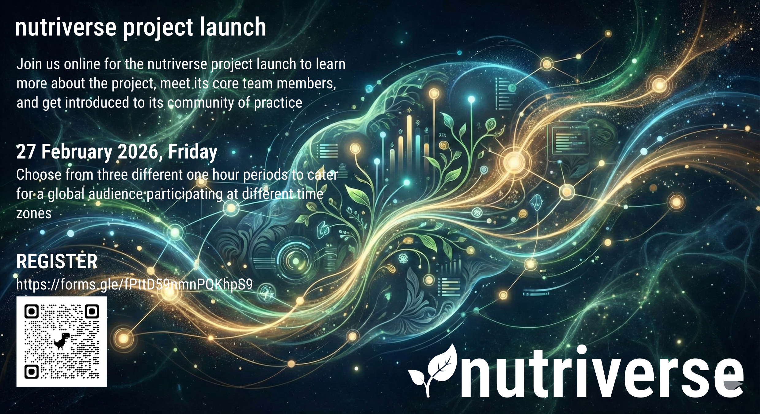 Join us online for the nutriverse project launch on Friday, 27 February 2026 to know more about the nutriverse, meet its core team members, get introduced to its community of practice, and learn how you can contribute
